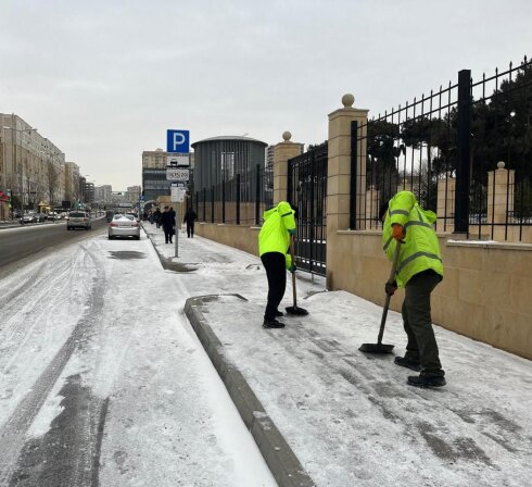 Səhər tezdən kommunal xidmətlərin əməkdaşları, işlərə cəlb olunan əlavə işçi qüvvəsi tərəfindən metro stansiyaları, avtobus dayanacaqları, piyada səkiləri, küçə boyunca ictimai-iaşə və digər obyektlərin, təhsil, səhiyyə və digər müəssisələrin qarşısının təmizlənməsi, buz bağlamış yerlərə duz səpilməsi və digər təmizlik işləri həyata keçirilir. Bununla əlaqədar paytaxtın müxtəlif ərazilərdə texniki duz toplanan məntəqələr yaradılıb.