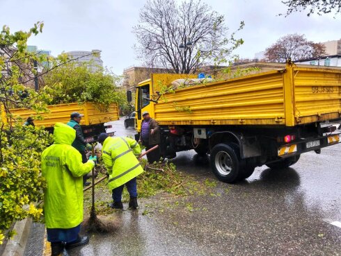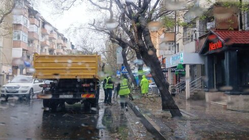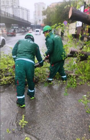 Dünən axşam saatlarından Bakı və Abşeron yarımadasında başlayan, güclü küləklə müşayət olunan leysanla bağlı şəhər kommunal xidmətləri xüsusi gücləndirilmiş iş rejiminə keçib. Bakı Şəhər Yaşıllaşdırma Təsərrüfatı Birliyindən bildirilib ki, bu gün səhər saat 10:00 üçün olan məlumata görə güclü külək nəticəsində şəhərdə 55 ağac sınıb, 15-dən çox ağacın budaqları qırılıb. Birliyinin əməkdaşları tərəfindən qırılan ağaclar kəsilib, zədələnənlər budanıb, ərazi təmizlənib. Hazırda birliyin mobil qrupları şəhərin müxtəlif ərazilərində gücləndirilmiş rejimdə işlərini davam etdirir.
