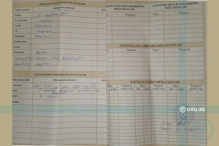 "Poliklinika sistemdə olmayan diaqnozu kağız üzərində ataya təqdim edib. Mən yoxladanda isə uşağın sağlam olduğu bildirilib, sadəcə, ürəyində problem aşkar edilib və bu diaqnoz rəsmi şəkildə 'e-tabib' elektron informasiya sisteminə daxil edilib. Lakin buna baxmayaraq, poliklinika uşağın müalicəsindən imtina edir".
