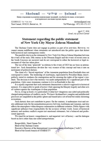 Qaynarinfo xəbər verir ki, Azərbaycan-Amerika Gənclər Federasiyası, Amerika Azərbaycan İnteqrasiya Mərkəzi, Amerika Azərbaycan Musiqi Fondu, Azərbaycan Amerika Təşkilatları Alyansı, Florida Azərbaycan Amerika Mədəniyyət Assosiasiyası, İsraildə Azərbaycan Mədəniyyət Mərkəzi, "Azİz” Xalqlararası Əlaqə Beynəlxalq Assosiyasiyası və Britaniya Azərbaycanlıları Cəmiyyəti bu iddiaların beynəlxalq hüququn norma və prinsiplərinə zidd olduğunu bildirərək Nyu-York merinə məktub ünvanlayıblar.
