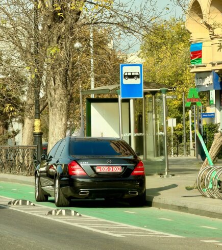 Bakının mərkəzində səfirlik maşını qaydaları pozdu - Foto