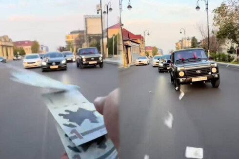 Toy karvanında “avtoş”luq edib yola pul səpdilər (VİDEO)