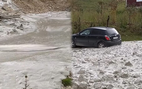 Savalan qəsəbəsində yol gölməçəyə çevrilib VİDEO
