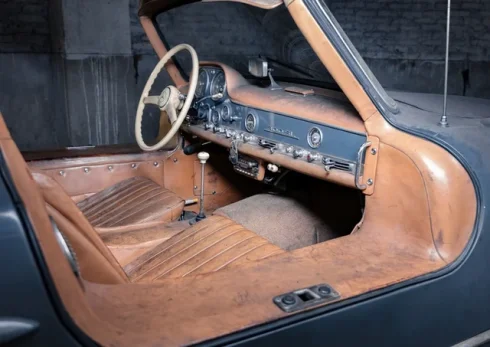 Bu nadir "Mercedes 300 SL" superkarı hazırda tozla örtülüb və bərpaya ehtiyac duyur. Lakin hələ də orijinal boya və dəri salonu olduğu kimi qalır və paslanmayıb.