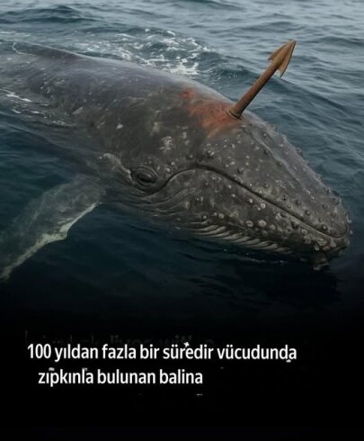 100 ildən çox bədənində qarpunla yaşayan balina tapıldı ...