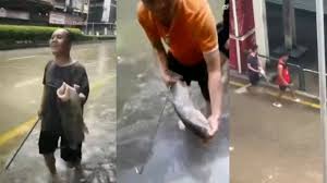 : Sakinlər su basmış küçələrdə balıq ovuna çıxdılar VİDEO