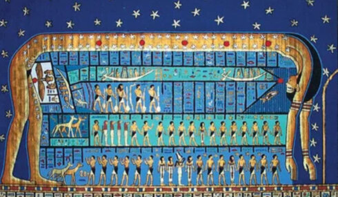 Согласно источникам, после смерти дух фараонов, подобно ангелу, возносится в небесное царство мёртвых и, соединяясь с солнечным диском Ра, становится Осирисом. Всё это начинается с фараона Амона Напатского, который в иранских источниках передаётся как фарнбаг (фарбаг), то есть «фараон-бек». Познав законы первичной материи, фараон-бек Амон отождествляет себя с Богом Пта (Птах), который «в уме и в сердце» формирует замысел творения (3). Посредством мысли, слова и жертвоприношения он осуществляет творение и проявляет на небесном уровне царство Осириса (Атума). Поэтому этот духовный мир обозначается и как «город сердца», куда входят сущности сердец фараонов и праведников.