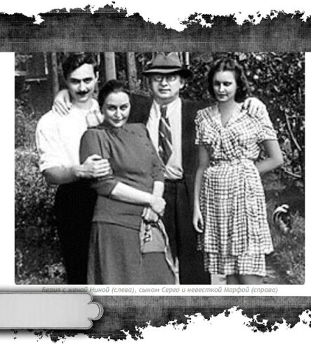 В день падения Лаврентия Берии, 26 июня 1953 года, сразу же арестовали и его жену Нино (ей тогда было 48 лет), и 29-летнего сына Серго, инженера по ракетным системам и радиолокации. Их поместили в разные тюрьмы. По словам Нины Теймуразовны, сначала она думала, что произошёл госпереворот, и власть в стране захватили какие-то антисоветчики.