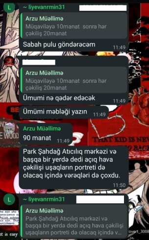 Daxil olan şikayət Xırdalan şəhərində yerləşən 7 saylı tam orta məktəbdəndir. Belə ki, 15 sentyabr “Bilik günü”də belə valideynlərdən pul yığılıb. Adınıda qoyublar şəkil çəkdirmək. Belə ki, Bilik Günü ilə bağlı tədbirdə şagirdlərin şəkilləri çəkilib və 7 saylı məktəbin direktor əvəzi Yeganə Paşayeva sinif rəhbərləri vasitəsilə valideynlərə bildirib ki, hər biri dörd şəkil almalıdır. alideynlər də bu vəziyyətdən narazı qalıb, bəziləri məktəbə gedərək etirazını bildirib. Onlar qeyd edirlər ki, şəkilləri almağa maddi imkanları yoxdur. Bir valideynin sözlərinə görə, uşağın məktəb ləvazimatları xərclərini çətinliklə qarşılayıb, indi də şəkil almağa məcbur edilir və buna imkanı yoxdur.Məsələ ilə bağlı məktəbdə direktor vəzifəsini müvəqqəti icra edən Yeganə Paşayeva açıqlamasında bildirib ki, valideynlərin şəkil almağa məcbur edildiyi barədə iddialaryanlışdır bu məsələ könüllüdür.