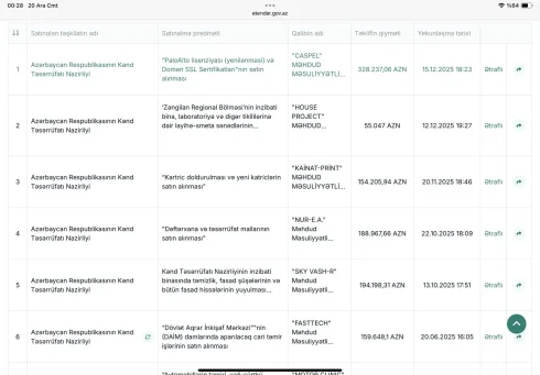 Bu mənzərədə ən çox gözə dəyən məqam isə budur: adətən, bu cür intensiv İT xərcləri, VPN, domen, lisenziya “yağışı” rəqəmsal transformasiya ilə məşğul olan nazirliklər üçün xarakterik sayıla bilərdi, amma söhbət kənd təsərrüfatından gedir. Rəqəmsal İnkişaf və Nəqliyyat Nazirliyi bu qədər tez-tez texniki vasitə almır, bu qədər VPN, domen, lisenziya, server xidməti müqaviləsi bağlamır, nəinki kənd təsərrüfatına cavabdeh qurum.
