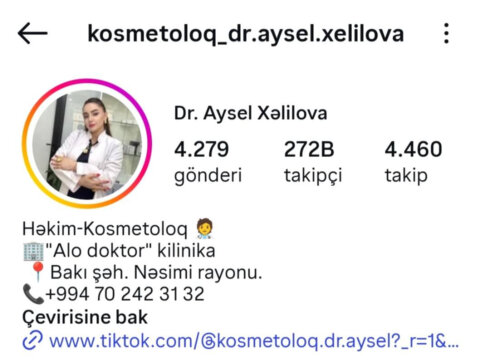 Daha narahatedici məqam isə yayılan məlumatlarda Aysel Xəlilovanın tanınmış şəxslərə, o cümlədən deputatlara belə qanunsuz prosedurlar icra etməsi, eləcə də müxtəlif kosmetoloji preparatların satışı ilə məşğul olmasıdır.