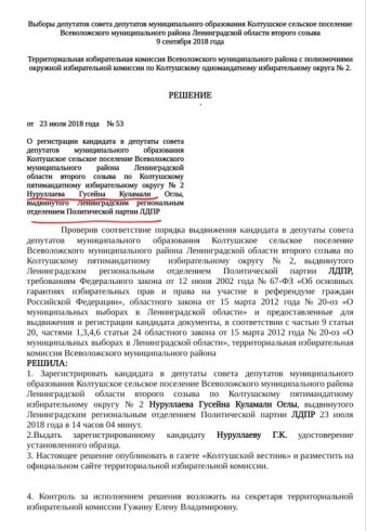 P.S. Cavanşir Həsənli daha sonra qeyd edir ki, Vladimir Jirinovskinin lideri olduğu Liberal Demokrat Partiyası (Leninqrad vilayəti üzrə regional şöbəsi) 2018-ci ilin yayında Milli Cəbhə Partiyasının sədri, Milli Məclisin deputatı Razi Nurullayevin qardaşı Nurullayev Hüseyin Qulaməli oğlunun yerli bələdiyyə seçkilərində namizədliyini irəli sürübmüş.