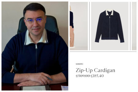Sandro Paris markasından olan kontrast yaxalı və zəncirbəndli kardiqan – qiyməti 650 AZN (təxminən 295 GBP);