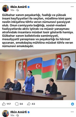 Ancaq hadisələrin gedişatı gözlənilməz istiqamətdə irəliləyib. Belə ki, icra başçısı Alı Alıyev yuxarı dairələrin iradəsinə zidd gedərək, köməkçisi İlkin Əmirliyə verdiyi tapşırıq əsasında sosial şəbəkələrdə Gülbahar Eyvazovaya “dəstək kampaniyası” başladılıb.