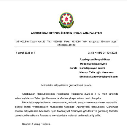 Məsələ ilə bağlı adı çəkilən şəxsin və mədəniyyət nazirliyinin mövqeyini dərc etməyə hazırıq.