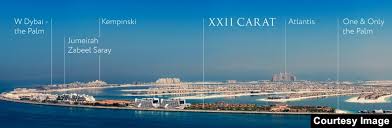 Пальма Джумейра и "22 карата" (XXII Carat), вид с моря. Визуализация из рекламного проспекта