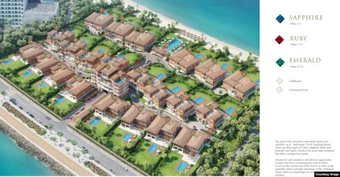 Виллы в "22 каратах" представлены в трех категориях по мере удаленности от моря. На первой линии расположены резиденции "Сапфир", далее следуют "Рубин" и "Изумруд". Изображение из рекламного проспекта комплекса