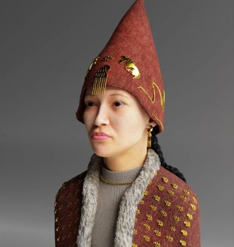 Так выглядела супруга знаменитого скифского царя из захоронения Аржан-2 рубежа IX-VIII вв. до н.э. Захоронение расположено на территории современной Тувы. Наша команда создала цветное 3d-изображение женщины из скифского могильника Аржан-2 на базе антропологической реконструкции Р.М Галеева. Биологический возраст «царицы» был определен как 30–35 лет, соответствующий когорте matures, учитывая, что антропологический тип был определен с участием монголоидного-уралоидного компонента. Сам же царь обладал европеоидной внешностью. Также мы проработали фактуры одежды, украшений и мягких тканей тела, чтобы портрет получился максимально реалистичным без утраты индивидуальных черт. Считаем, что работа удалась на славу и нам удалось сделать ее максимально живой! Айана Мундус