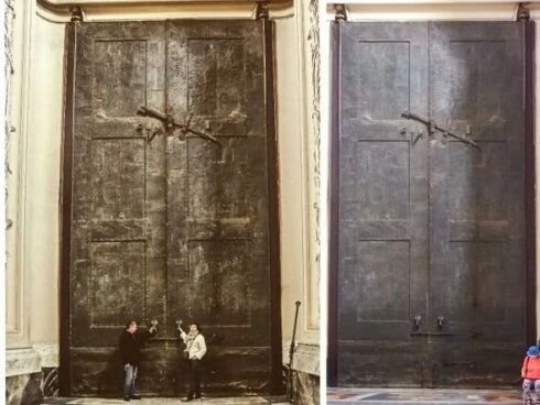 Двери Исаакиевского собора также поражают своими размерами. Всё говорит о том, что данное сооружение использовалось не только людьми, но и великанами.