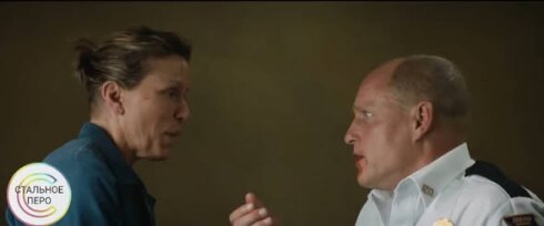Билл вызывает Милдред для допроса, он угрожает сообщить о билбордах Чарли, ее бывшему мужу. Мужу, который ее избивал и чью машину она продала, чтобы оплатить аренду билбордов. Гаденыш, и тот, и этот. Но во время допроса Билл кашляет кровью и попадает в больницу. Реакция женщины, вернее, ее игра, достойна Оскара, который она, кстати, получила: злость на копа в мгновение сменилась заботой об умирающем человеке.