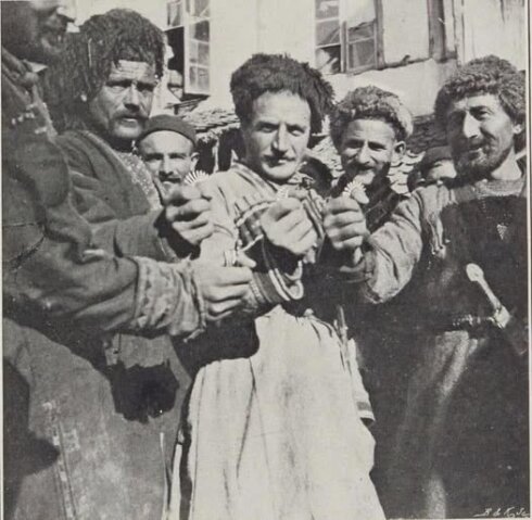 Хевсурсы демонстрируют свои боевые кольца. 1900 год.