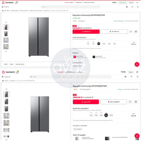 Açıqlanan məlumatlardan da göründüyü kimi, “Kontakt Home” “Samsung RS70F65Q1TWR” markalı soyuducunu Gürcüstan vətəndaşlarına Azərbaycan vətəndaşları ilə müqayisədə 508 dollar və ya təxminən 34% daha ucuz satır.