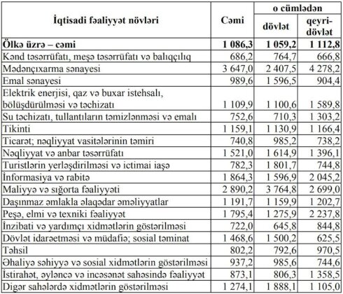 Yeniavaz.com açıqlanan rəsmi məlumatlara istinadən xəbər verir ki, əməkhaqqı neft-qaz sektorunda 3 835,2 manat, qeyri neft-qaz sektorunda 1 035,4 manat olub.
