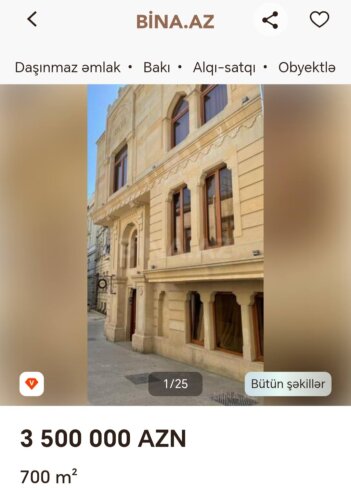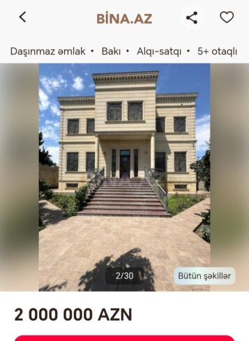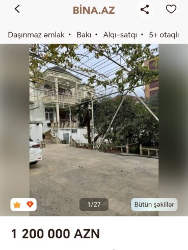 Son aylarda paytaxtın mərkəzində və ətraf qəsəbələrdə olduqca bahalı vilalların satışına dair elanların sayı artıb.