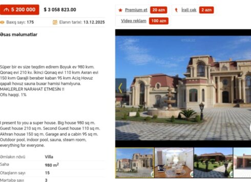 Bakıda bahalı villar, obyektlər satışa çıxarılıb.
