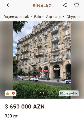 XALQ-a apardığı araşdırma nəticəsində əmlak saytlarında apardığı müşahidələr göstərib ki, xüsusilə sentyabr,oktyabr,noyabr aylaraından etibarən dəyəri 1 milyon manatdan yuxarı olan əmlakların satışı ilə bağlı elanların sayı artıb.