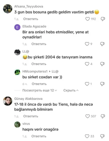 TİENS şirkəti ilə bağlı iddialar yayılıb. Bildirilir ki, şirkət işə düzəltmə adı altında vətəndaşları aldadır, internetdə real olmayan, formal vakansiyalar yerləşdirir.