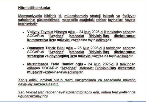 SOCAR-da 2025-ci ilin əvvəlindən kütləvi ixtisarların ("optimallaşma", " təşkilatı sağlamlaşdırma" 50+,60+ yaşlarında işçilərə müxtəlif üsullarla işdənçıxma ərizəsi yazdırılması və s. ) aparılması nəticəsində çoxlu sayda insan işsiz qalmışdır. İxtisarlar əsasən fəhlə katoqoriyalarına tədbiq olunmuşdur .İxtisarlar vaxtı Baş ofisə, idarəetmə aparatlarına ,yüksək vəzifələrə( müşavirlər,müavinlər və s) isə işçi qəbulu davam etmişdir. Və yəqin ki,sonda SOCAR hesabatlarında ixtisar olunan işçilərin sayı , könüllü , öz ərizəsi ilə işdən çıxanların sayı ilə tənzimlənəcək . Və əvəzində yeni işçi qəbulunu göstərəcək.(ölkədə işsizliyin sayını azaltma).