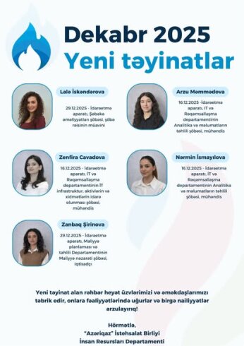 Dekabr ayında 5 nəfər qadın vəzifəyə təyin olundu. 20 il isləmiş adam bir vakansiya müraciət edəndə cavab gəlir ki, sizin bu vakansiya üzrə əmək stajiniz uygun gelmədi .Bəs bu xanımların görəsən o sahədə təcrübəsi varmi ?