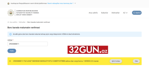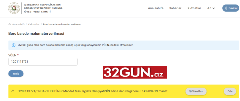 32gun.az-ın əldə etdiyi məlumatla görə, sözügedən holdinqin hazırda ümumi vergi borcu 1 439 094.19 manat təşkil edir.