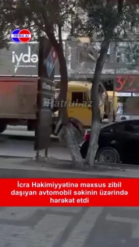 İcra Hakimiyyətinə məxsus zibil avtomobili səkinin üzərində gedir