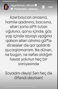 “Yeni Sabah” xəbər verir ki, bu sözləri aparıcı Nigar Fərhad sosial media hesabında yazıb.