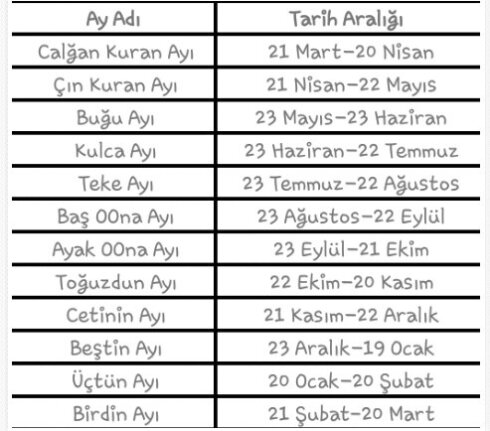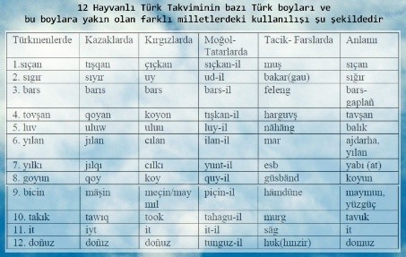 12 HAYVANLI ESKİ TÜRK TAKVİMİ.