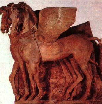 Статуя супружеской пары Этрусков на навершии погребального склепа. Италия. 1 фото.