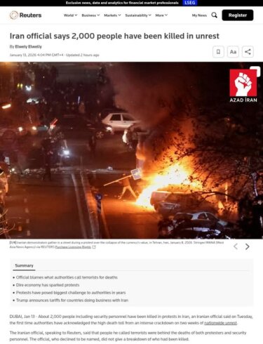 İran hakimiyyəti ilk dəfə olaraq etirazlarda ölənlərin sayının təxminən 2000 olduğunu etiraf etdi